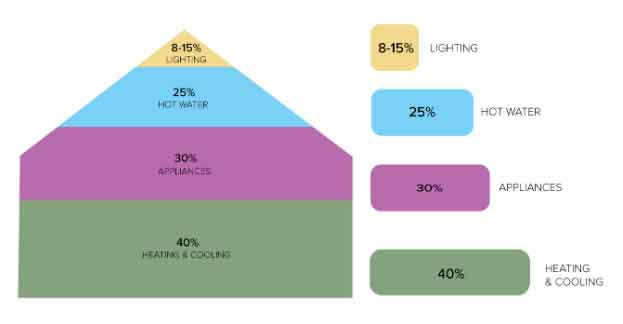 Unfortunately, your electricity bill does not itemise your use. While each home’s electricity use will differ slightly, the table below provides a high-level overview of where your electricity and your money is being spent.” Tells Stuart.