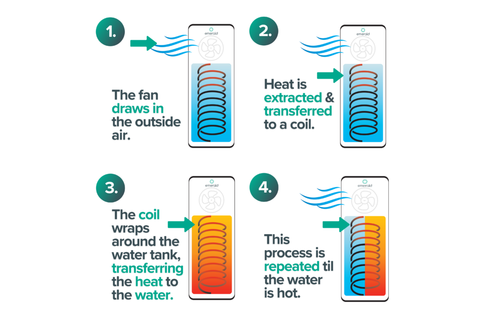 How a hot water heat pump works in 4 steps